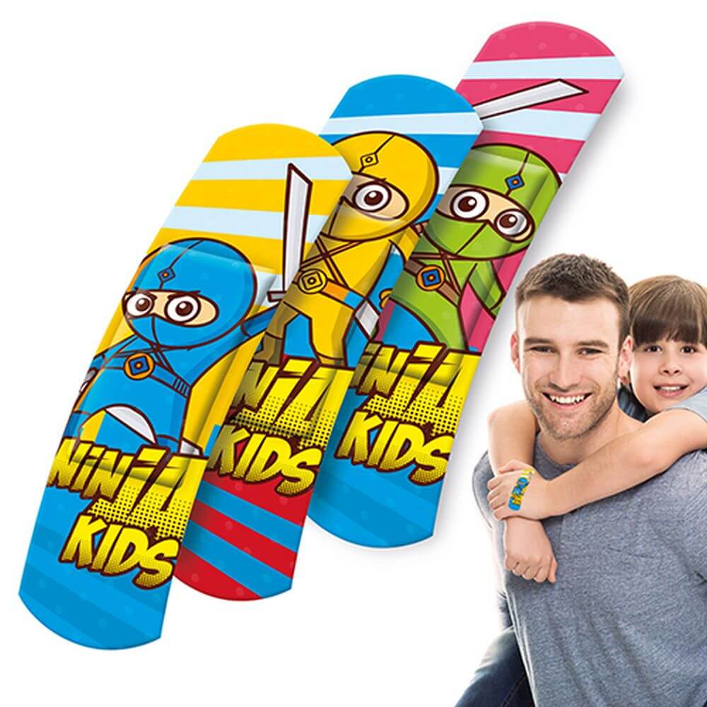 Die Streifenpflaster sind wasser- und schmutzabweisend, halten zuverlässig und sind einzeln hygienisch verpackt. Erhältliche Kindermotive: Ninjas, Prinzessinnen, Autos, Farmtiere, Märchen. Größe pro Strip: 6 x 1,7 cm. Inhalt: 40 Stück.