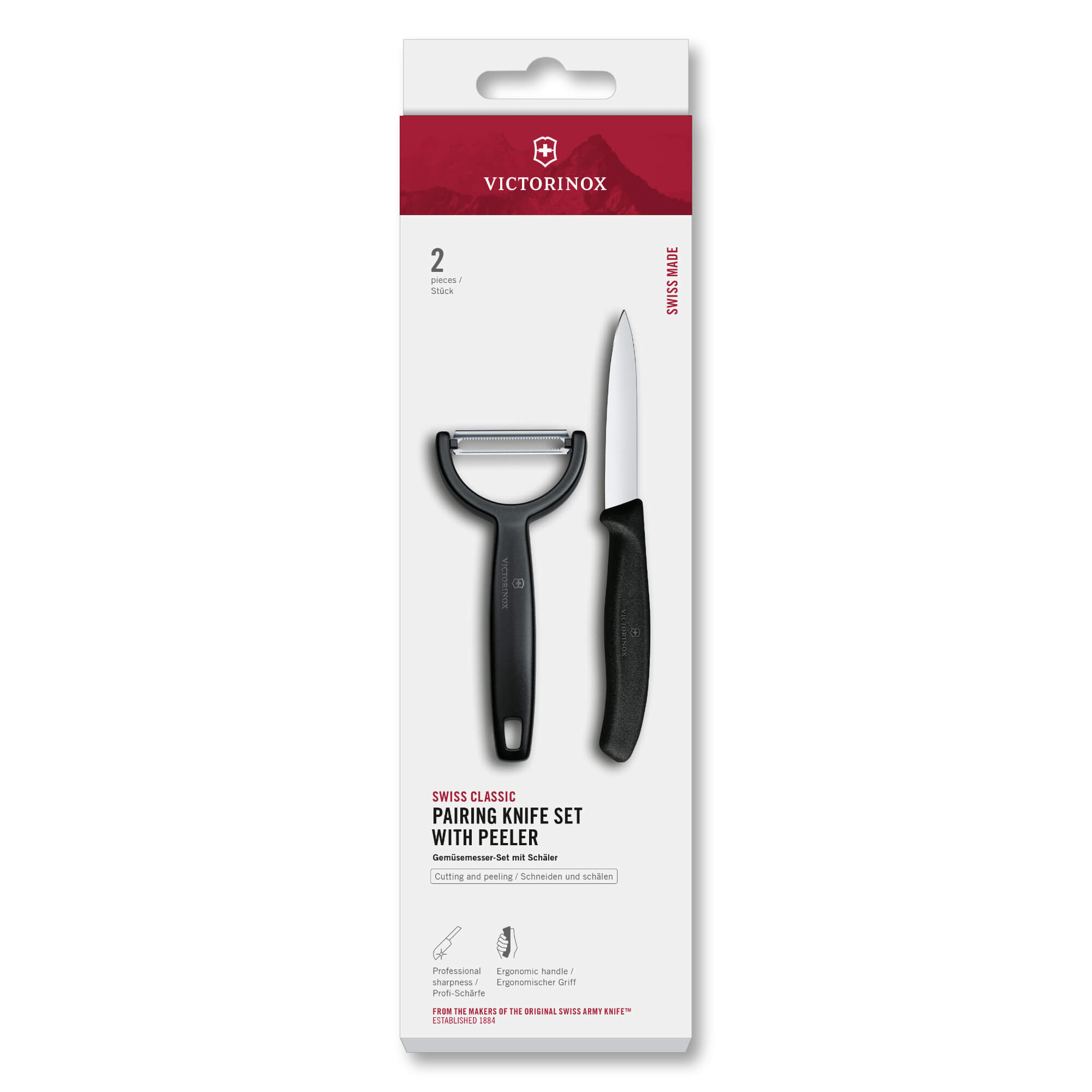 Hol dir das 2-teilige Victorinox Set für präzises Schneiden und schnelles Schälen. Langlebig, komfortabel und sofort einsatzbereit.